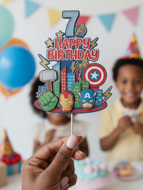 Topper size of 5 inches - 8 inches. Topper style consists of no 2D on matter color paper type. Each topper comes with a paper straw attached. The height of the cake topper can easily be adjusted by simply cutting the straw to your desired height.
