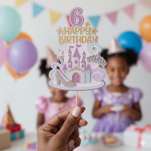 Topper size of 6.5 inches - 10inches. Topper style consists of 3D on colored and/or glitter card stock paper. Each topper comes with a paper straw attached. The height of the cake topper can easily be adjusted by simply cutting the straw to your desired height.